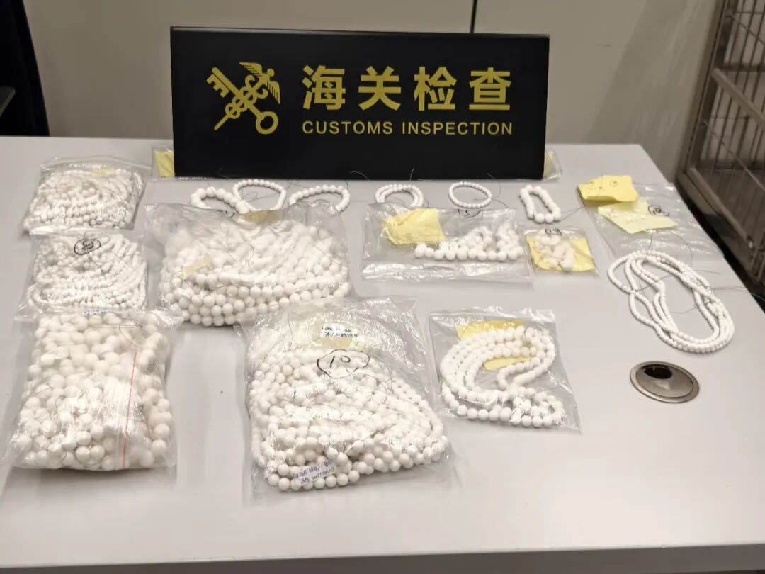 {jz:field.toptypename/}莲塘海关关员在对进境客车进行监管时,发现1辆黑色私家车行李物品机检图像异常,在其行李袋内装有大量圆珠形手串,遂对其进行拦截检查。经进一步检查,海关关员在司机行李袋内发现大量用透明塑料密封袋装着的白色圆珠和用其制成的手串,表面有光泽,透光观察可见内部有层状结构,疑似为砗磲制品。后经广东鹏海司法鉴定所鉴定,该批白色圆珠均为濒危动物双壳纲帘蛤目砗磲科制品,共计4443粒。砗磲属于《濒危野生动植物种国际贸易公约》(CITES)附录Ⅱ所列明的保护物种。