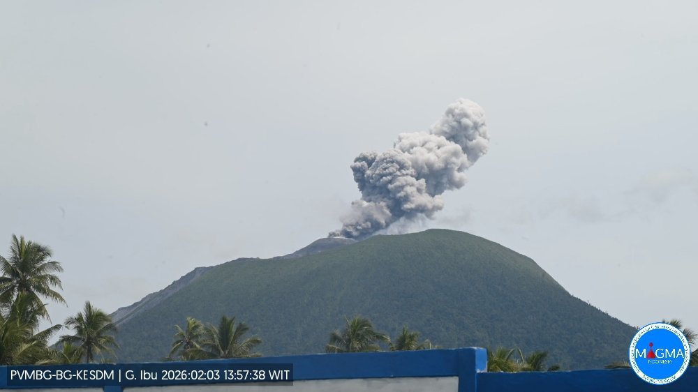 据印尼火山和地质减灾中心消息,当地时间2月3日13时56分,印尼北马鲁古省伊布火山发生喷发。火山灰柱高约500米,喷发持续时间为54秒。(总台记者 李琳)