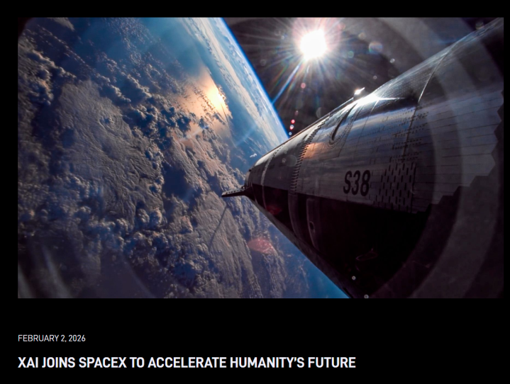 1、马斯克的SpaceX正式收购马斯克的xAI,计划在太空建造数据中心