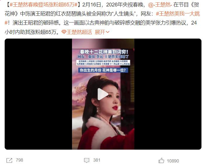 全球看春晚了吗?被哪个节目诱导了呢?让全球没念念到的是,春晚戒指之后,大部分网友都合计王楚然要火了,春晚登场20秒,商讨热度竟高于迪丽热巴,最要津的是,她还手持一部王炸“待播剧”,全球期待吗?