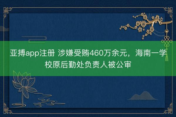 亚搏app注册 涉嫌受贿460万余元,海南一学校原后勤处负责人被公审
