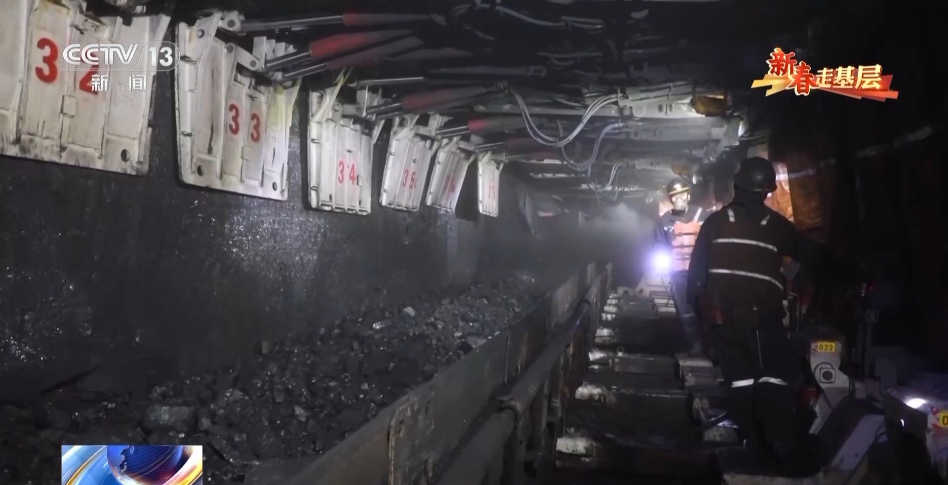 总台记者 崔肖冉:现在我们终于到了这个采煤工作面,距离地面的垂直距离大概有400多米,现在我们要钻过这个铁桥,来到采煤的一线。