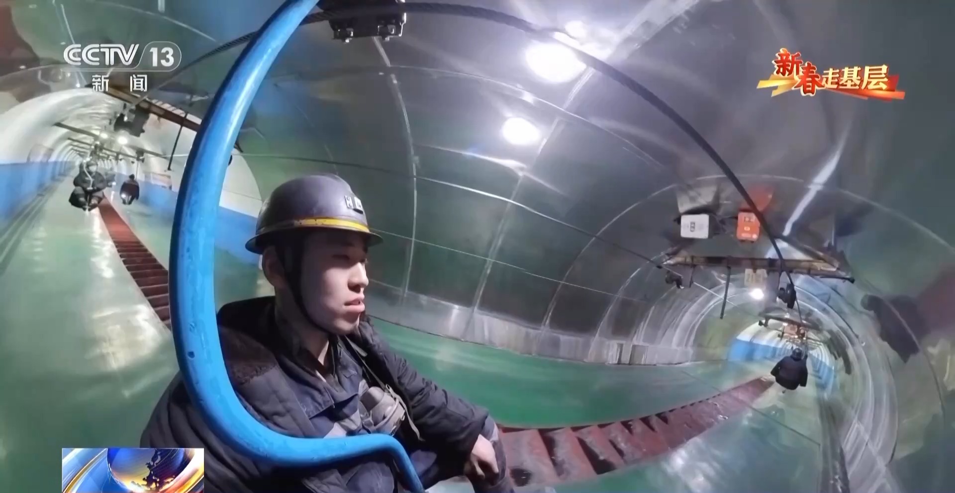 总台记者 崔肖冉:从小火车上下来,明显感觉到风力特别大,其实一路上,越往下风力是越大的,在墙上我们可以看到,上面写着距井口11900米,也就是说我们走了将近12公里了。