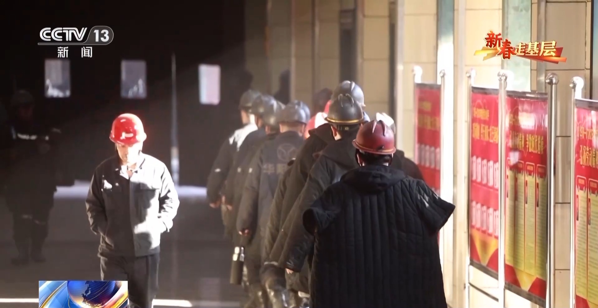 迎着一抹朝阳,煤矿工人们又要出发了。400多米深的矿井下,源源不断的煤炭通过传送皮带被运到地面,发往全国各地,点亮万家灯火。