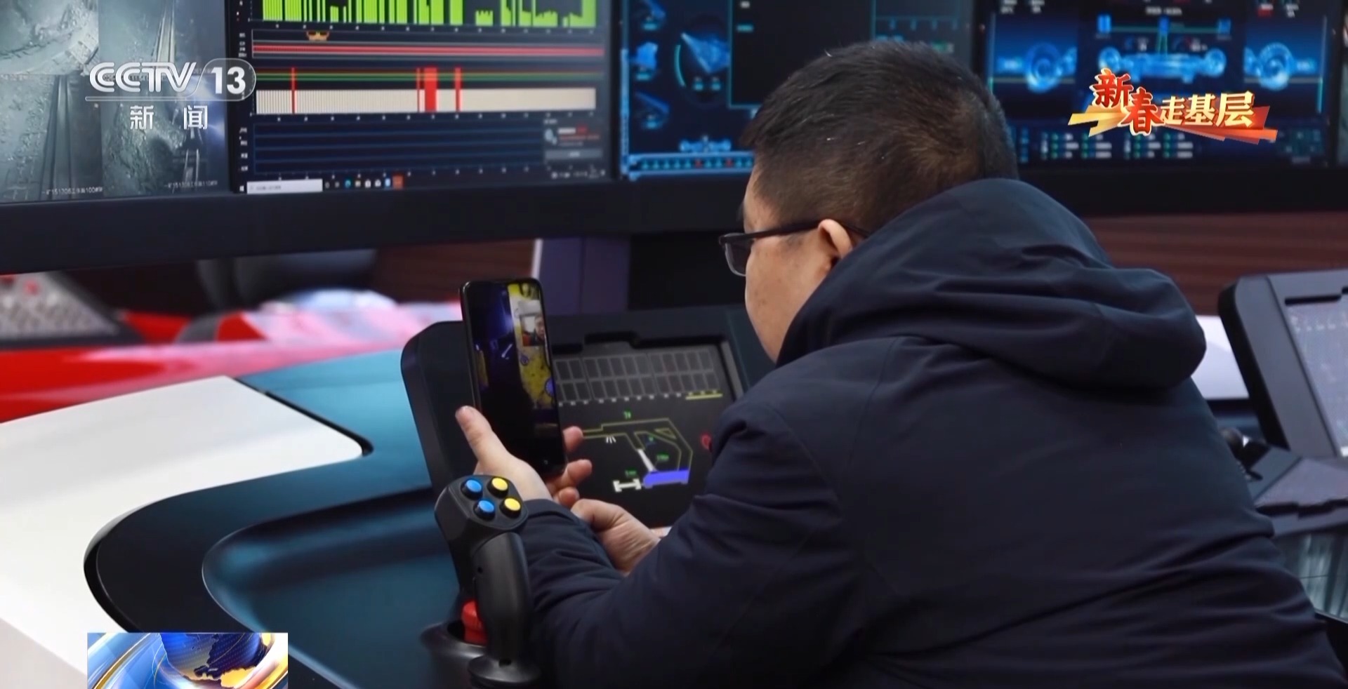 华阳集团一矿综采四队跟班技术员 于晋康:我负责操纵转载机,把工作面的原煤运输到皮带上面。我们现在是5G智能化矿井,所以转载机这块就有视频监控,可以实时看到我们工作面的,包括设备的运行状况、人员的作业状态,我们要确保一个无视频不作业、无监控不作业、无监管不作业。