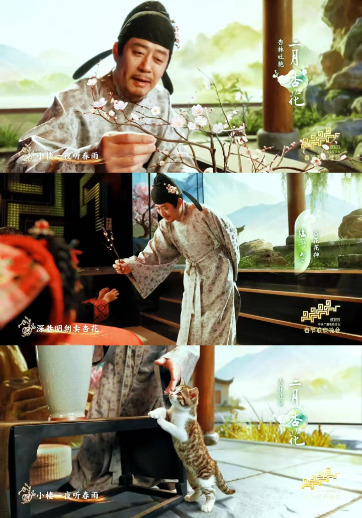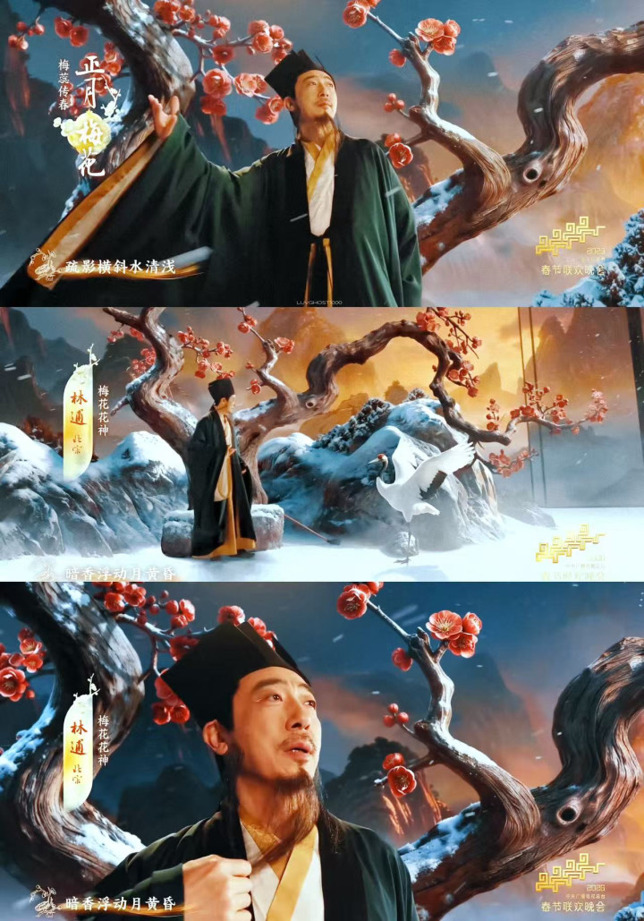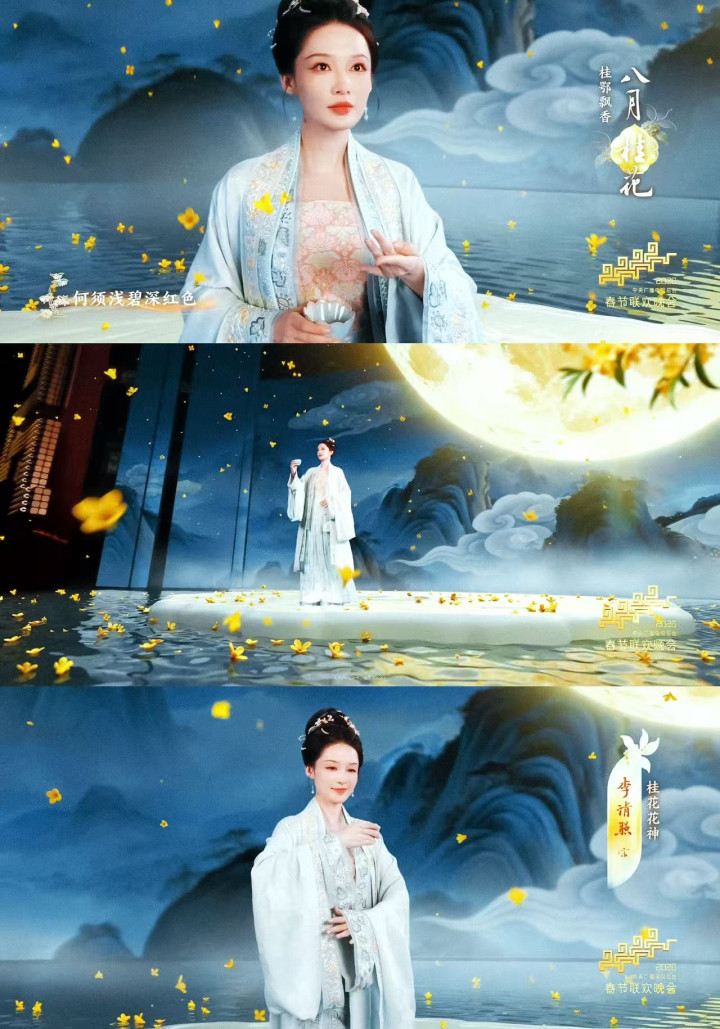 正月是梅花,二月是杏花,三月是桃花,四月是芍药,五月是榴花,六月是荷花,七月是蜀葵,八月是桂花,九月是菊花,十月是芙蓉,十一月是山茶,十二月是水仙。宁理是第一位出场的,一出来不雅众就哇声一派,AI科技加上非遗时期,让东说念主仿佛随着镜头穿越回到了古代。