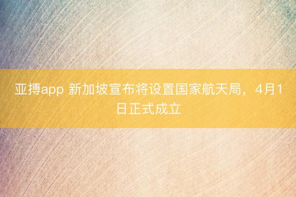 亚搏app 新加坡宣布将设置国家航天局,4月1日正式成立