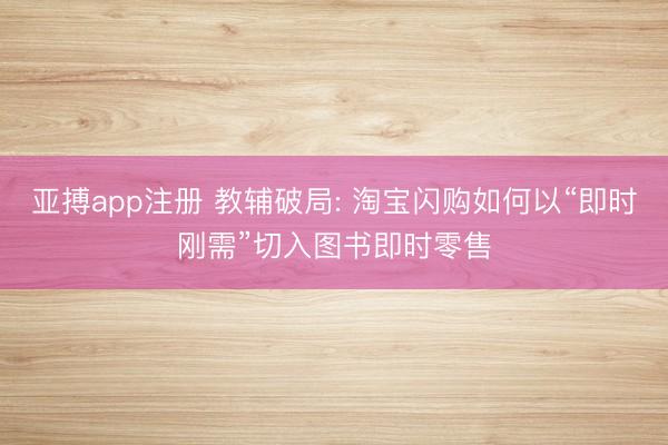 亚搏app注册 教辅破局: 淘宝闪购如何以“即时刚需”切入图书即时零售