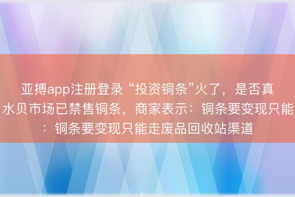 亚搏app注册登录 “投资铜条”火了,是否真正具备投资属性?水贝市场已禁售铜条,商家表示:铜条要变现只能走废品回收站渠道