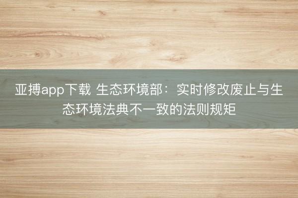 亚搏app下载 生态环境部:实时修改废止与生态环境法典不一致的法则规矩