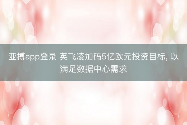 亚搏app登录 英飞凌加码5亿欧元投资目标, 以满足数据中心需求