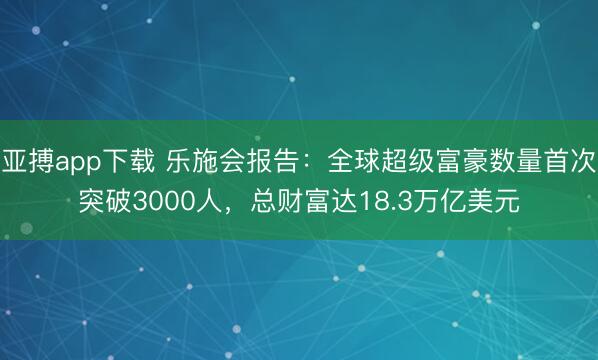 亚搏app下载 乐施会报告:全球超级富豪数量首次突破3000人,总财富达18.3万亿美元