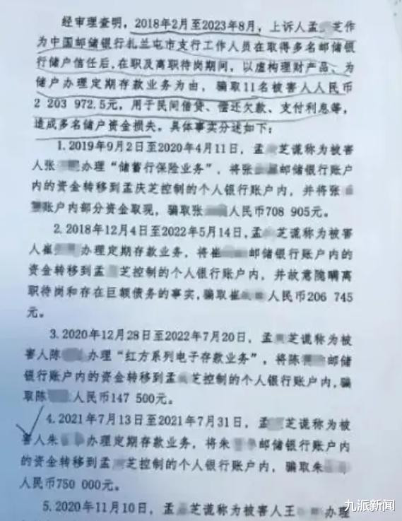 2021年7月,内蒙古的朱女士将75万元存入邮储银行内蒙古呼伦贝尔扎兰屯市支行,帮她办理业务的银行员工孟某芝却在其不知情的情况下,转走了她的存款。